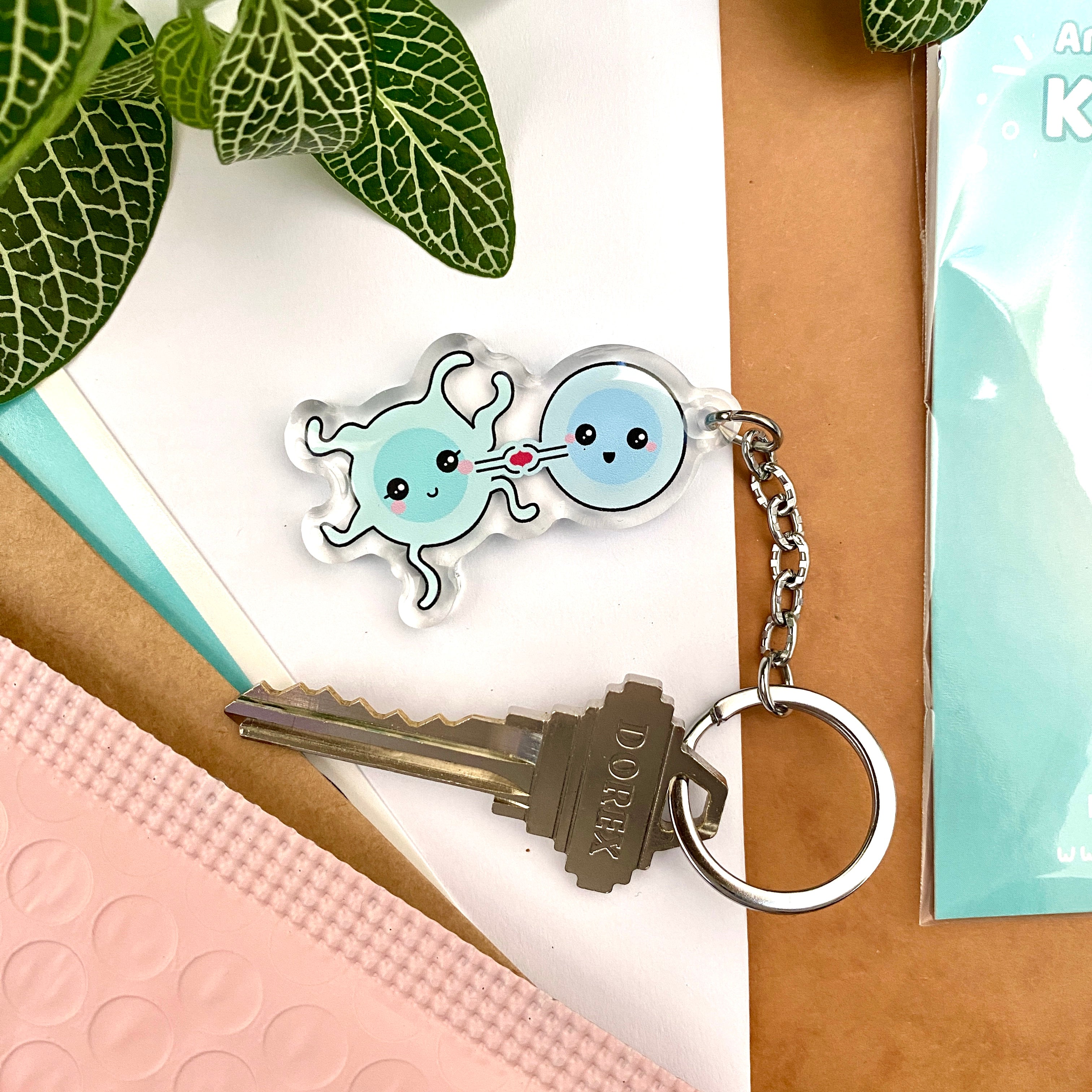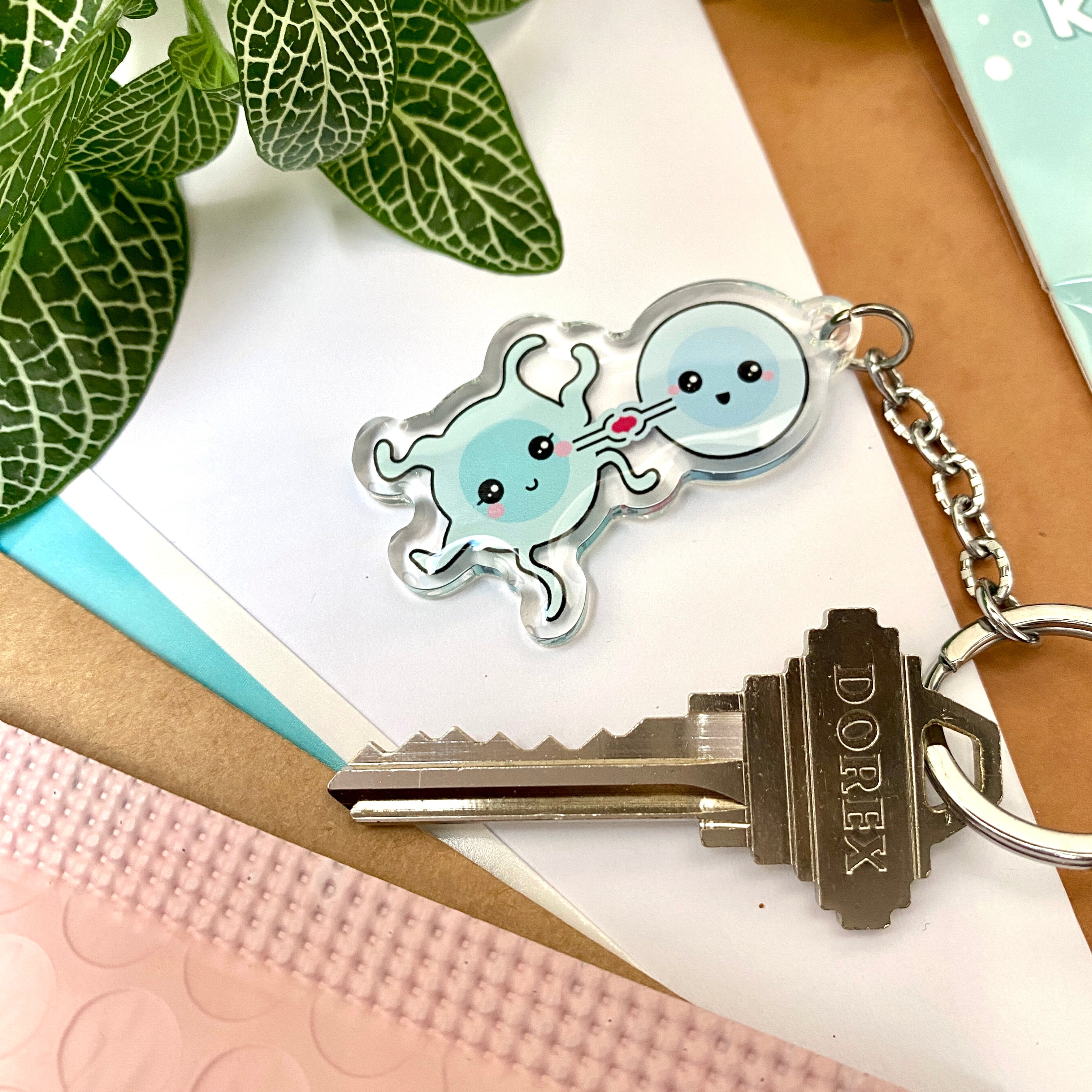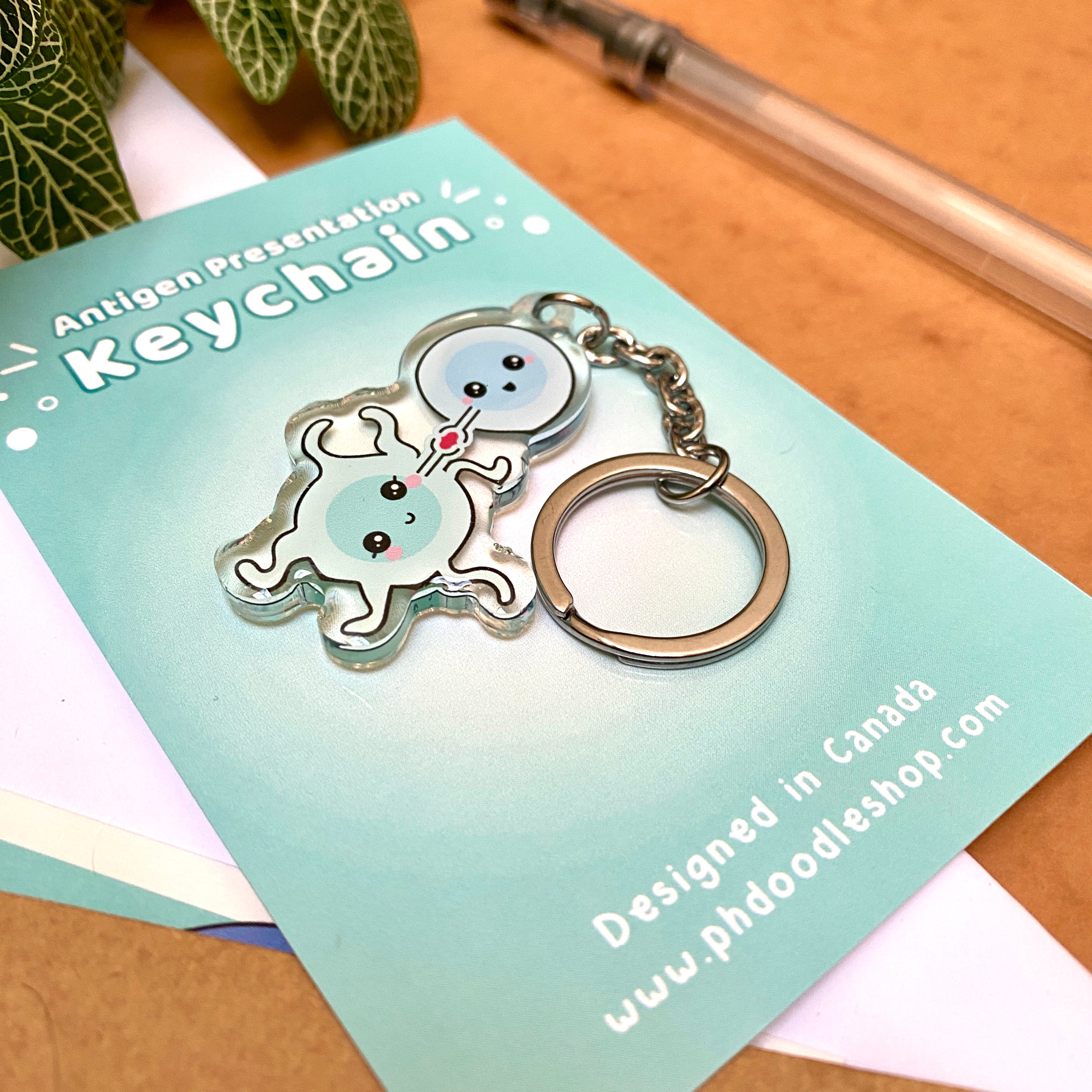 The keychain is made of clear acrylic and makes for a light-weight accessory that will not go unnoticed. Whether you are an immunologist, or simply love the field of immunology, this keychain is a great addition to your set of keys!