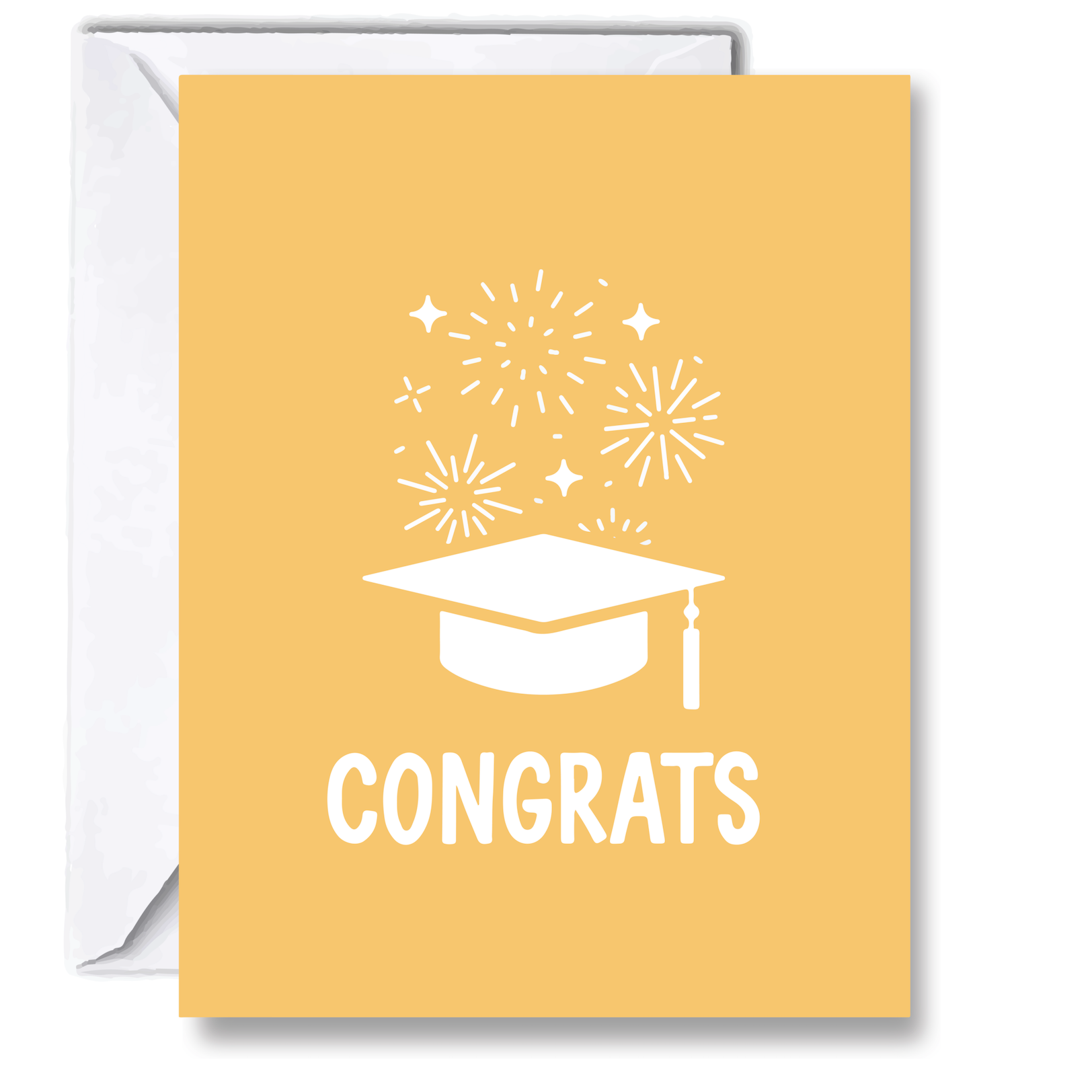 Rendez le jour de remise des diplômes de votre proche encore plus spécial avec cette carte. Disponible en trois couleurs, cette carte affiche un design festif, parfait pour célébrer cette étape importante. L'intérieur de la carte est vierge, ce qui vous laisse tout l'espace nécessaire pour écrire un message personnel félicitant votre proche pour son grand accomplissement.