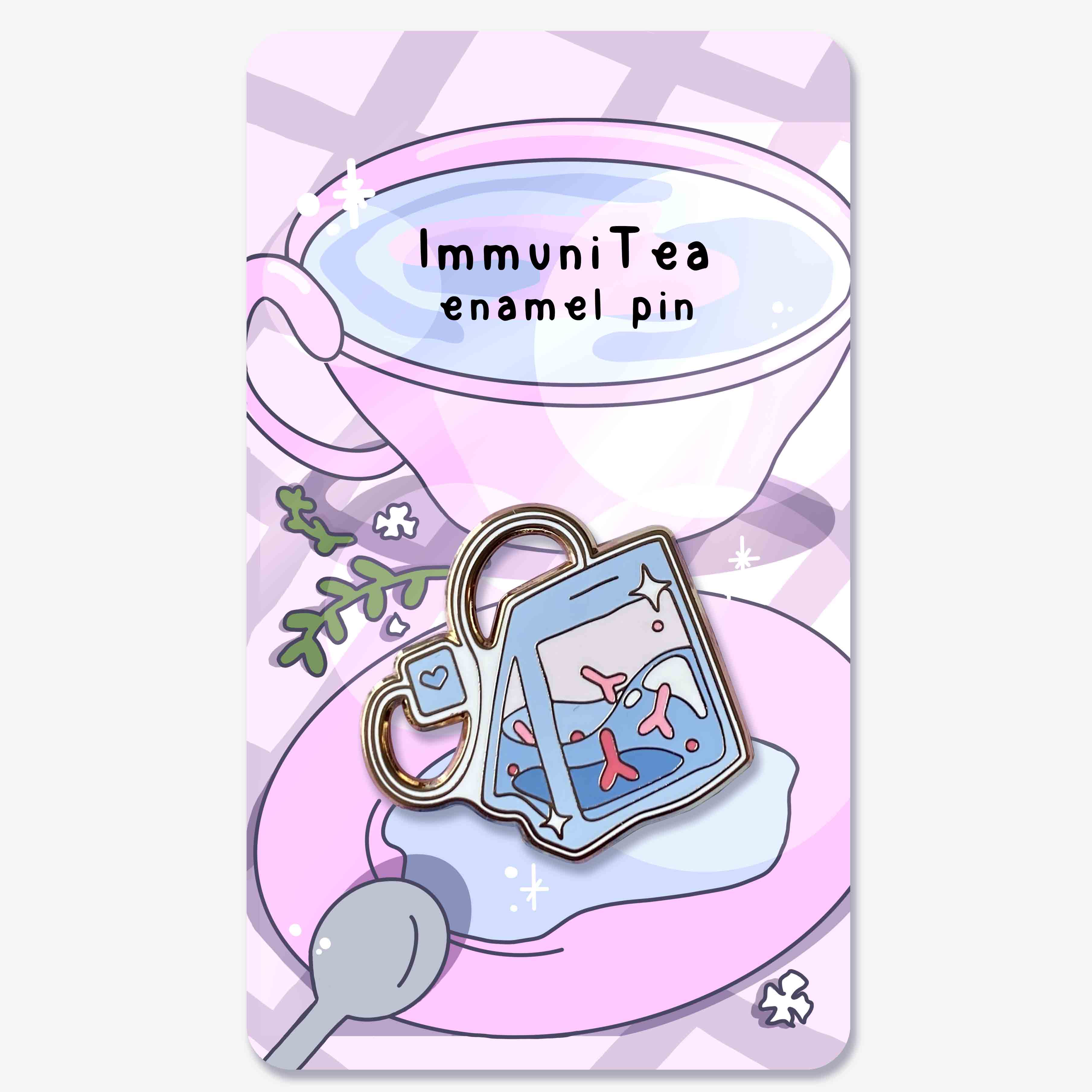 Découvrez notre pin's en émail ImmuniTEA, un indispensable à la collection de tout scientifique ! Ce pin's représente un sachet de thé rempli de petits anticorps (ou anTEABodies !). Fabriqué en métal de haute qualité, il est orné d'un émail éclatant qui sublimera son design. Mesurant 3,2 cm, il est l'accessoire idéal à accrocher à votre blouse, votre sac à dos ou votre cordon.