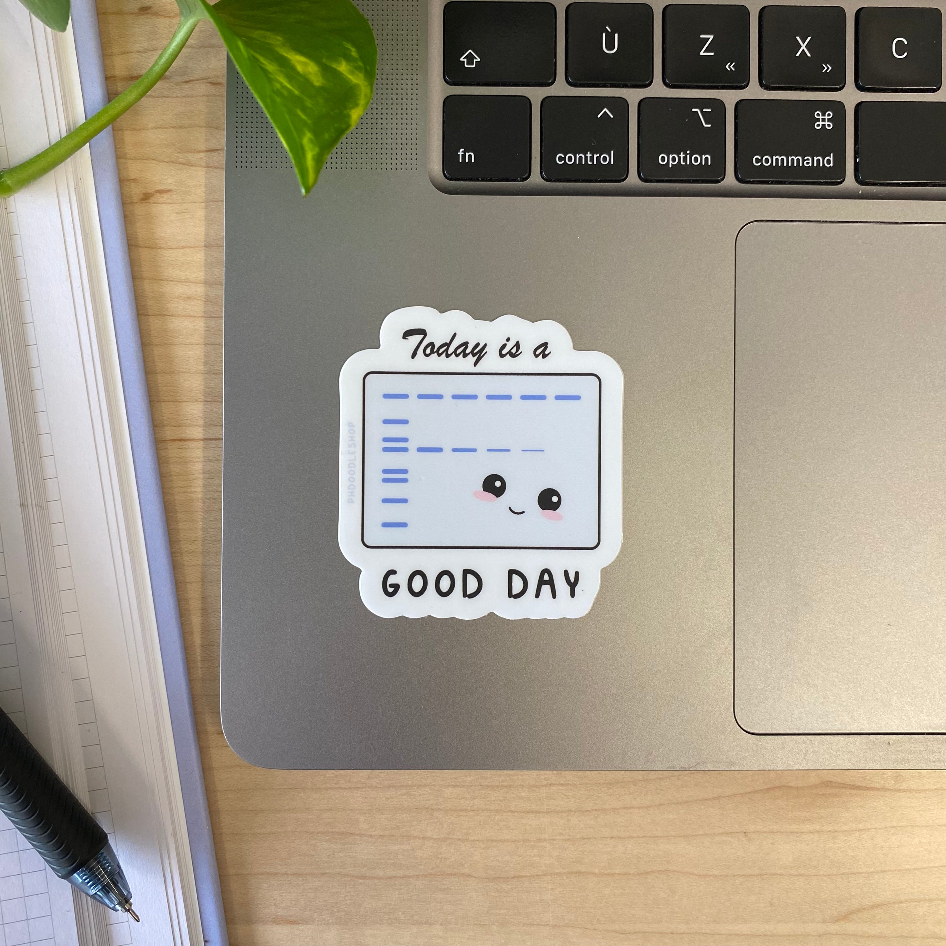 Autocollant de biologie moléculaire inspiré de la technique du western blot comportant la phrase « Aujourd'hui est un bon jour ».