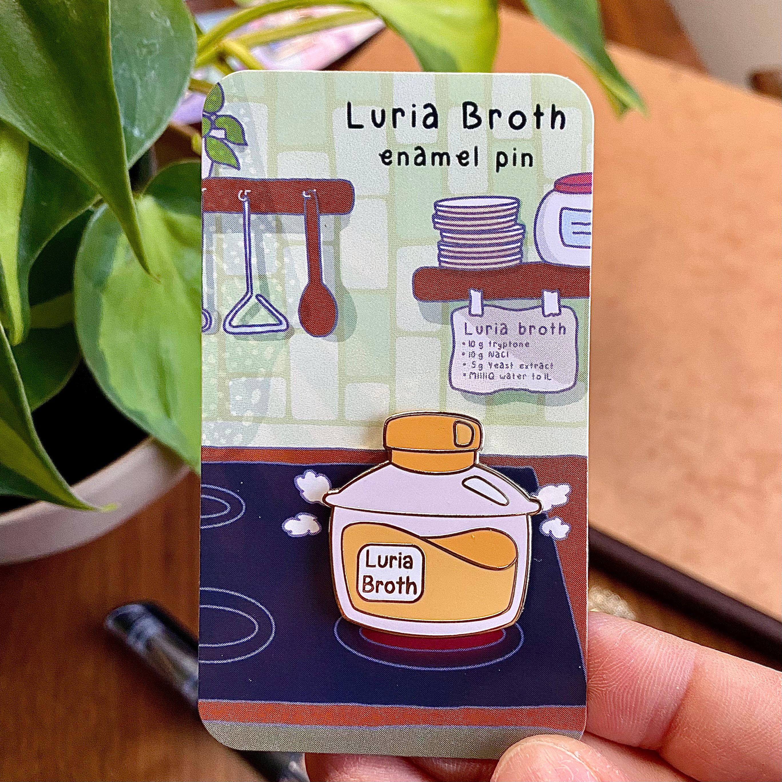 Ce pin's en émail dur et sa carte de support s'inspirent de l'autoclavage du bouillon Luria avant son utilisation en culture bactérienne en laboratoire. Fabriqué en émail et métal de haute qualité, il garantit durabilité et longévité. Il mesure environ 3,2 cm, ce qui en fait un produit idéal pour les laboratoires. il La taille idéale pour orner un sac à dos, une blouse de laboratoire ou un cordon. Que vous soyez microbiologiste, scientifique ou professionnel de laboratoire, ce la broche est une excellente façon de montrer votre amour pour la culture bactérienne !